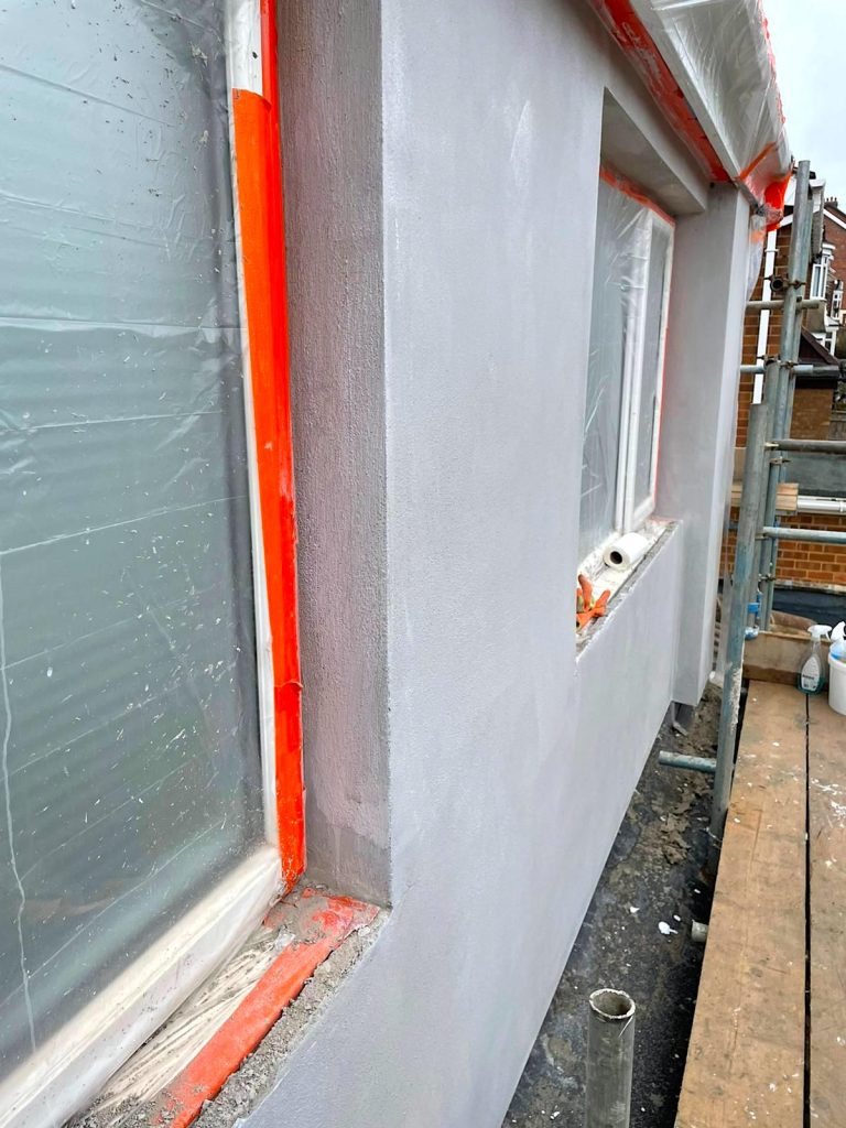 The EWI render job in Heighington included 90mm EPS insulation board to 130m2 with the other 100m2 of the house render only.